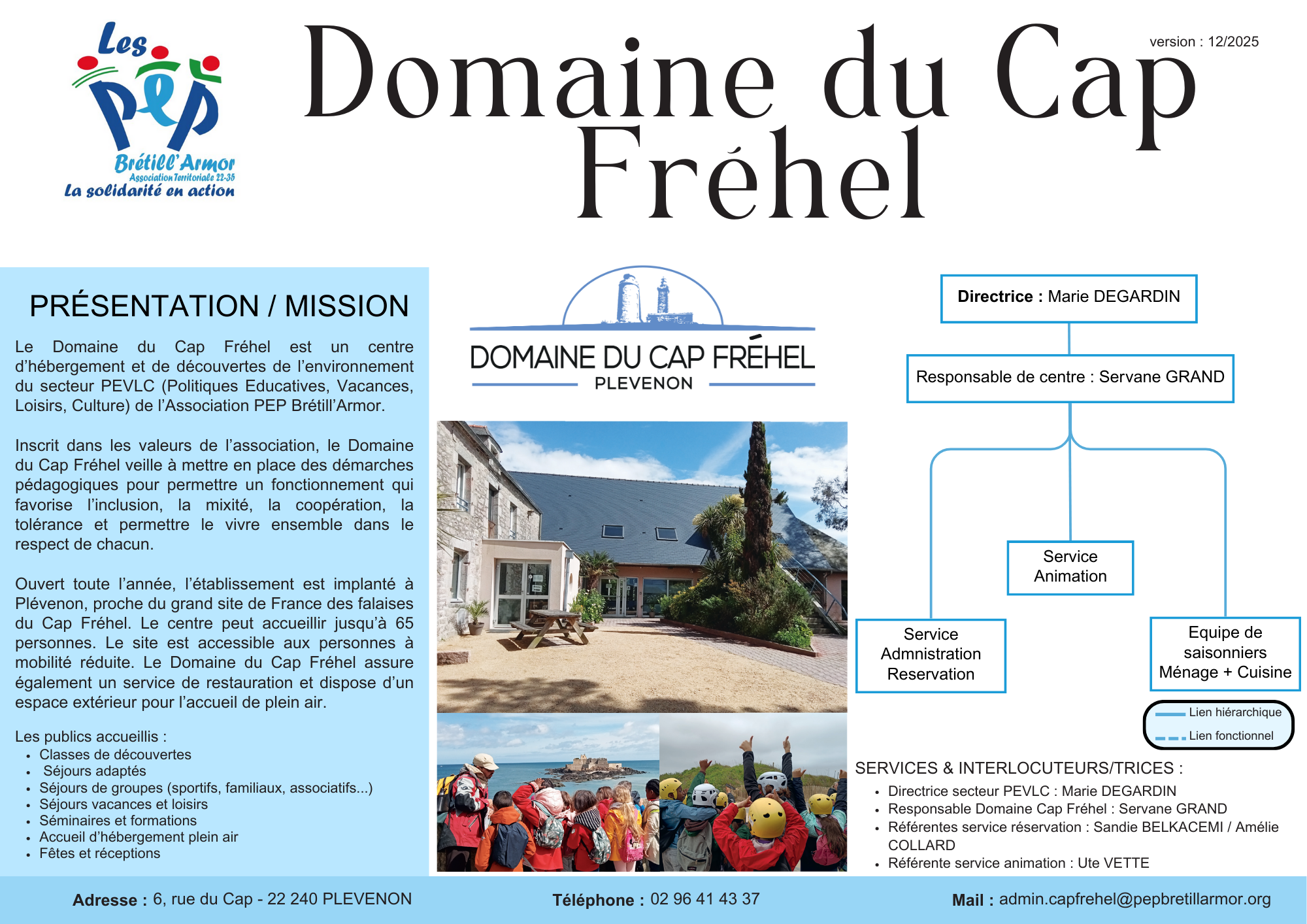 Le Domaine du Cap Fréhel est un centre d’hébergement et de découvertes de l’environnement du secteur PEVLC (Politiques Educatives, Vacances, Loisirs, Culture) de l’Association PEP Brétill’Armor.